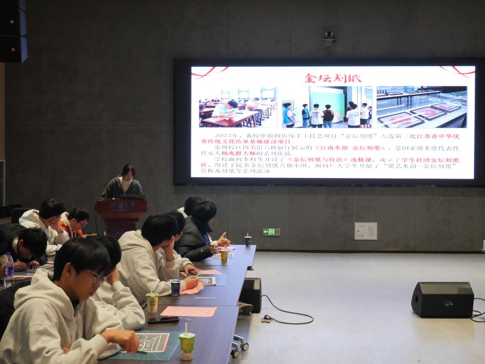 作为本次活动的特色环节,金坛刻纸体验让学子们沉浸式感受非遗文化魅力。金坛刻纸是金坛区国家级非物质文化遗产,活动现场特别邀请金坛刻纸社的同学进行专业讲解与指导。