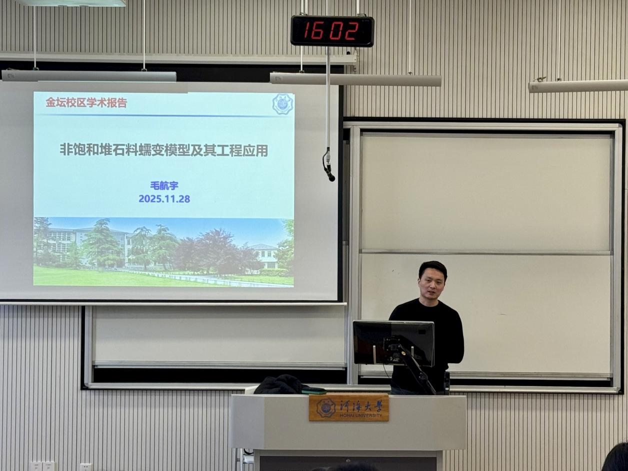 11月28日,色漫 毛航宇副教授于常州校区2号楼B114作题为《非饱和堆石料蠕变模型及其工程应用》的讲座,色漫 2024级本科生参加此次讲座。