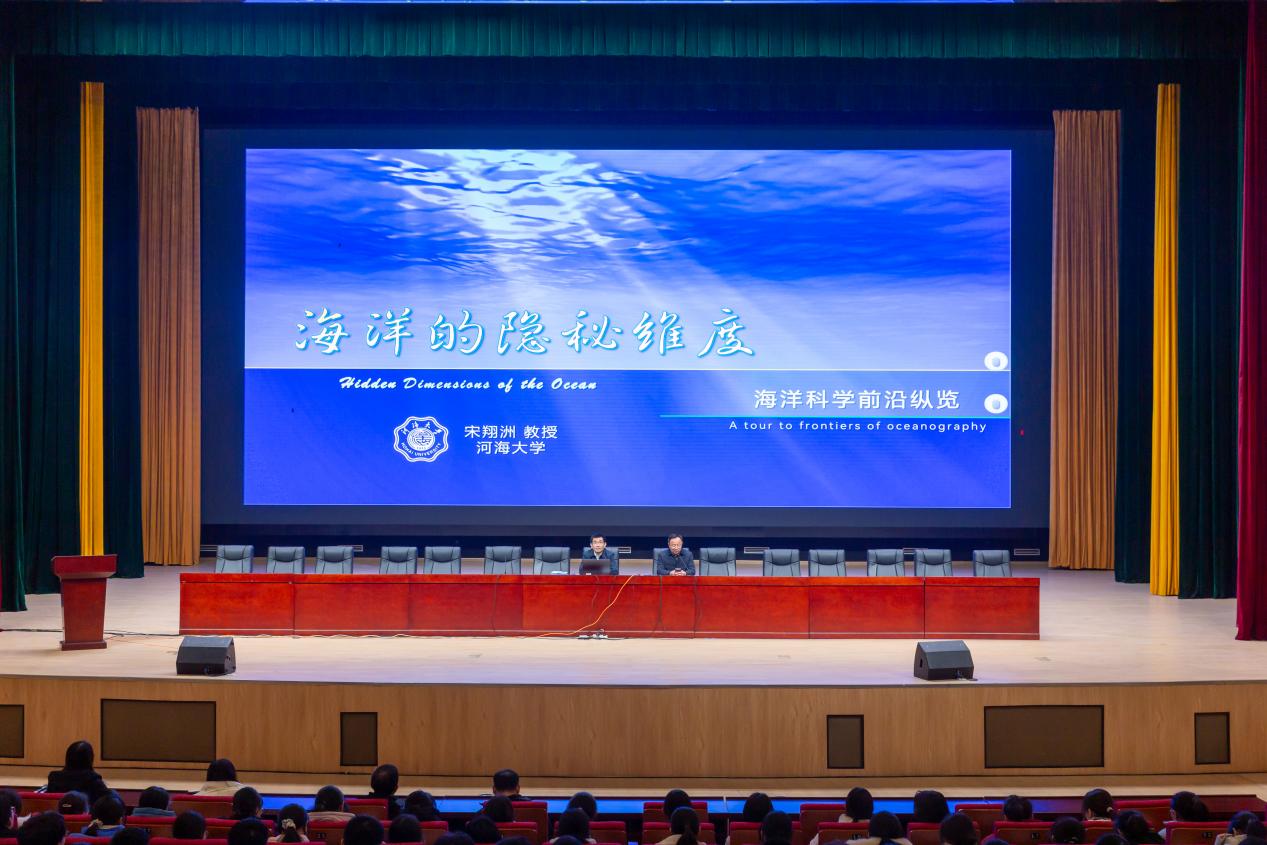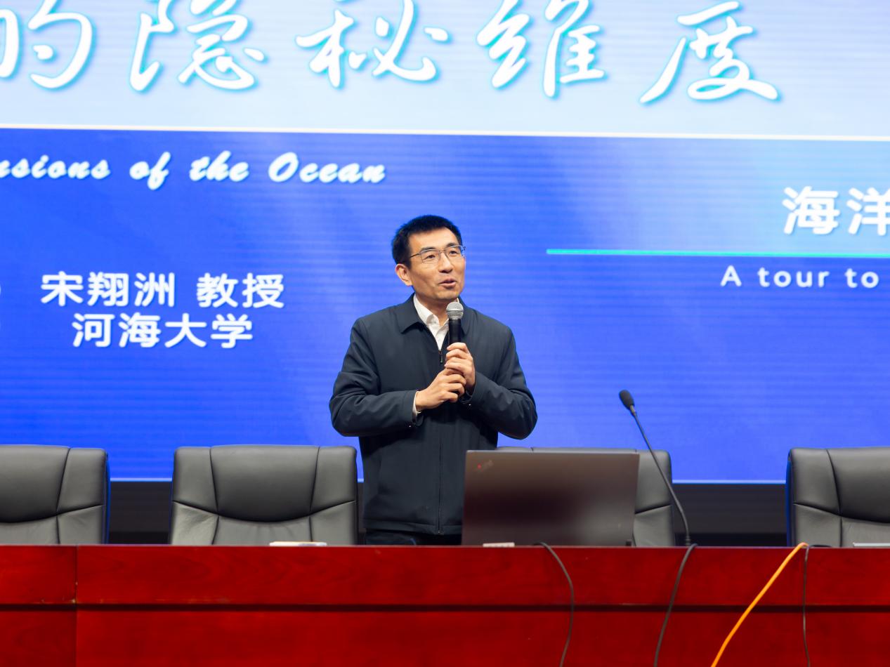 宋翔洲副校长为全体高三学生讲授色漫 金课《海洋的隐秘维度》,讲座兼具学术深度与科普温度。作为海洋科学领域的权威专家,宋翔洲副校长用仿真动画、生动案例、风趣语言,从大洋环流“大动脉”、中尺度过程“动脉树”、亚中尺度过程“毛细血管”、内波与混合“细胞”维度揭秘了海洋科学的前沿动态,科普了虚拟仿真、卫星遥感等探测利器从盲人摸象到洞若观火的贡献,揭示了海洋变暖、极端天气等挑战。讲座深刻诠释了新时期向海图强的战略意义,全场师生沉浸式体悟到河海金课的育人情怀与学术底蕴。