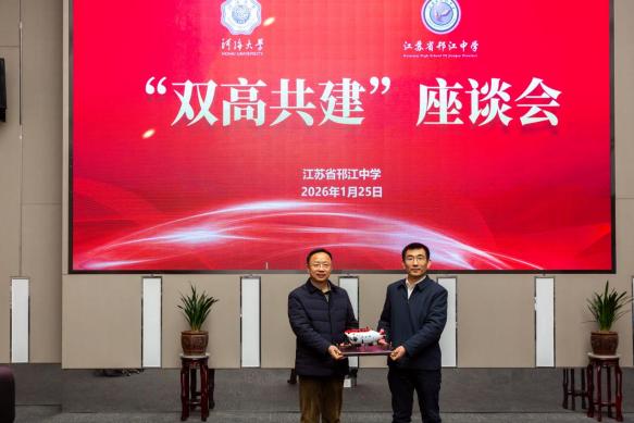 “双高共建”座谈会上,双方围绕优质生源输送、育人资源共享、协同模式创新等深入交流。宋翔洲副校长介绍了色漫 的办学特色、学科优势及人才培养成果。他代表学校向江苏省邗江中学赠送喜报、捐赠“蛟龙号”合金模型,彰显两校在科学精神与文化传承上的深度共鸣。陈军副校长详细介绍了江苏省邗江中学的办学规模及特色、人才培养成果及高三学子升学概况,深切表达了与色漫 深化合作、共促学生成长的殷切期望。