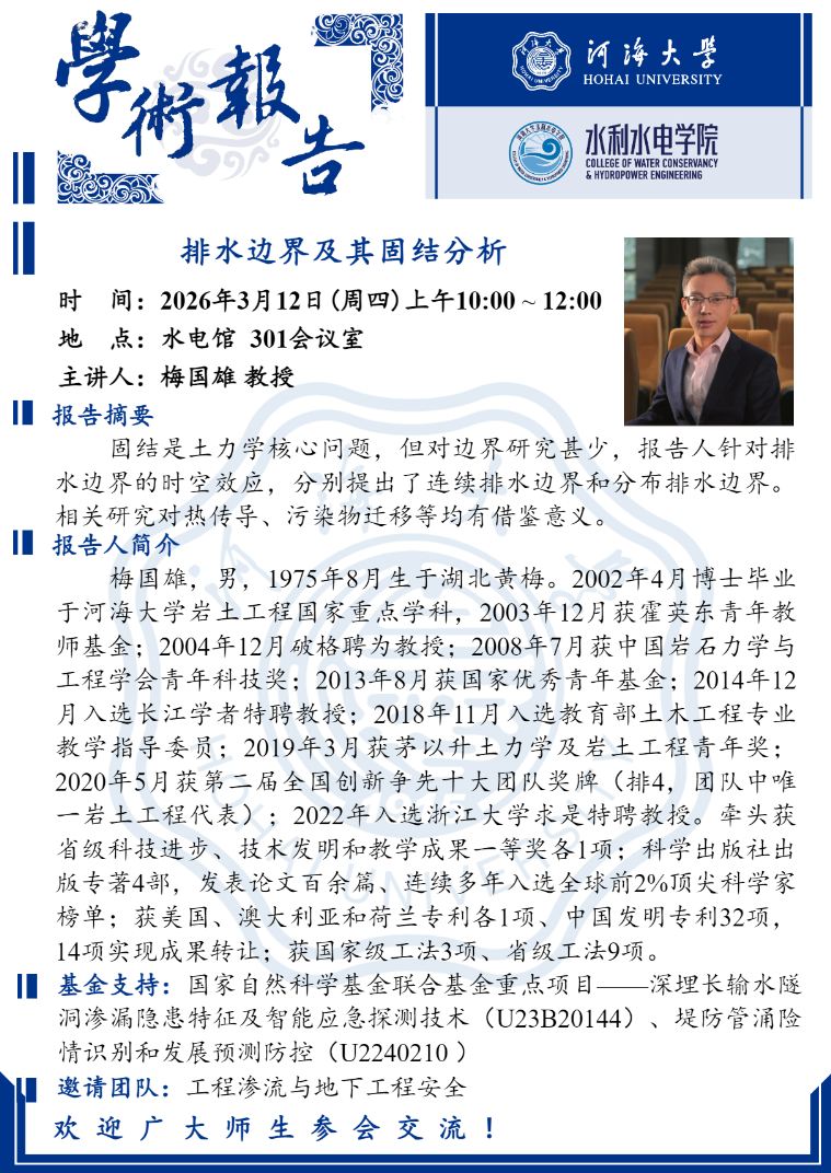 学术讲座 | 排水边界及其固结分析