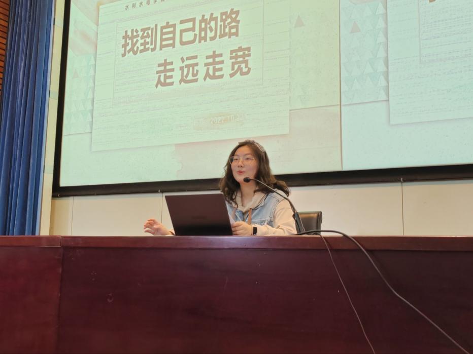 张亚琳学姐以自己大学三年来的学习工作经历为例,鼓励同学们要找好自己的路。她激励同学们要以优秀学长姐为榜样,将自己选择的路走好走宽,希望大家以积极的心态面对大学四年的生活。