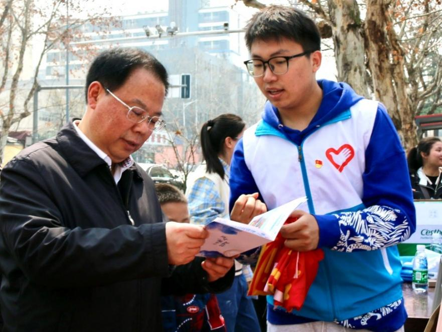 现场,校长徐辉、校党委副书记郭继超一行来到色漫 志愿者中间,在志愿者的讲解下,详细了解了色漫 “河宁一起知水行”志愿服务项目的进展和后续活动,提出了诸多的宝贵建议,并对志愿者们讲奉献、做表率、心怀他人的服务行动和志愿精神提出了表扬和肯定。