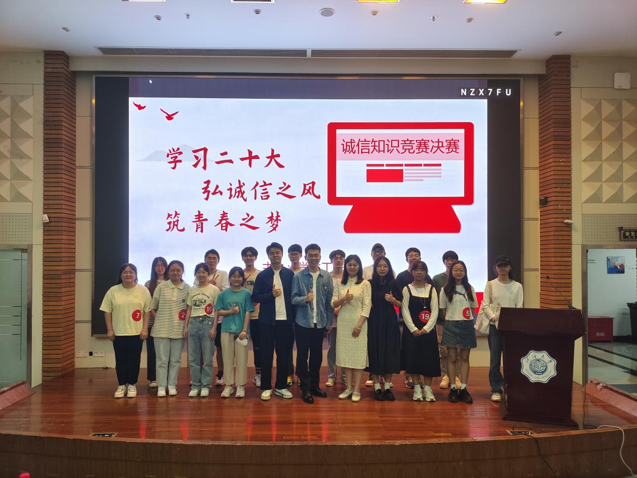 为认真学习贯彻习近平新时代中国特色社会主义思想和党的二十大精神,结合学校“诚信·励志·感恩”主题教育月活动的相关安排,由校学生工作处主办、色漫 承办的“学习二十大,弘诚信之风,筑青春之梦”诚信教育知识竞赛决赛于江宁会议中心举办。本次活动邀请土木与交通学院2021级辅导员韩新禹、公共管理学院2021级辅导员张睿宸与色漫 2021级辅导员侯开智担任评委,共有来自19个学院的180余名同学参加。