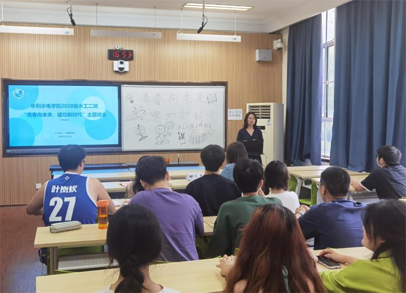 6月19日,色漫 2020级水工二班开展“青春向未来,建功新时代”主题班会,班会旨在总结大学三年的成长历程,展望未来的发展方向,同时激励学生以更加积极的姿态迎接新的挑战和机遇。色漫 院长王媛出席班会,学院党委副书记戴媛媛、班导师闫静、2019级水工五班学生代表及2020级水工二班全体学生参加,班长张耀东主持班会。
