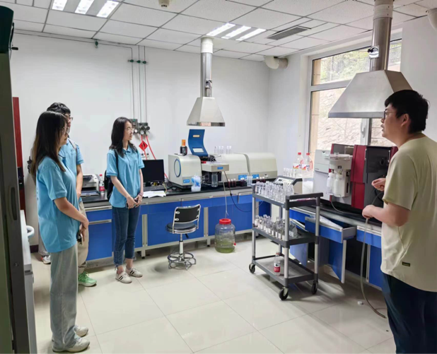同时,实践团队在校友蔡涛的带领下,来到辽宁省水环境检测中心、沈阳市水文站进行深入的参观学习。随着实践团成员观看其起飞巡航降落过程,水环境检测中心的工作人员讲解了新技术在水文方面的利用,比如测流无人机,无人船等。接着,实践团成员认真学习了解了该站点的历史故事和诸多荣誉。随后,成员们走入实验室,近距离接触用于检测地表水重金属含量的原子吸收仪器和监测范围更广、精度更高的ICP仪器(电感耦合等离子体发射光谱仪)并参观了储存检测用气的气瓶室等实验室。最后,实践团成员坐进会议室,倾听工作人员讲述该站点的辉煌过去并一同展望该站点光明未来。