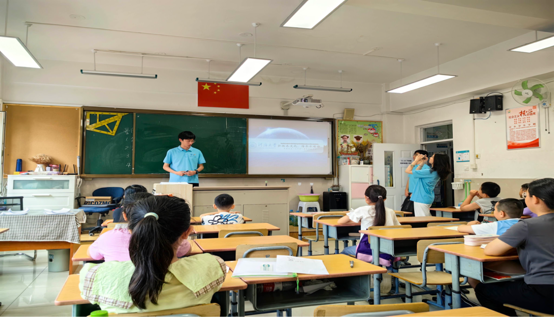 实践团队走进辽宁省沈阳市沈河区文化路小学,给孩子们讲述关于水资源的相关知识。宣讲第一部分:生命之本,万物之源。向孩子们展示水对万事万物的巨大作用。第二部分:资源稀缺,危机重重。通过展现当今水资源短缺的现象,激起孩子们心里的危机意识。第三部分:清水不见,黑水浮现。通过展示当今不同地区的水污染照片,引起同学们的共鸣与重视。第四部分:节约用水,从我做起。让孩子们认识到节水的重要性,并采取行动,从现在做起,从小事出发,将节水落细落小落实。宣讲过程中,组长王春达积极向孩子们提问,进行互动,给踊跃发言的小朋友送出奖品礼物,大大调动了孩子们的参与度,也提高了水文化水精神宣讲的效果。