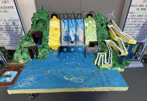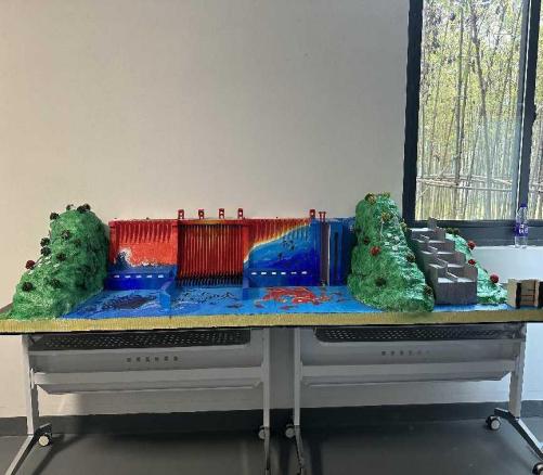 经过初赛的激烈角逐,12支队伍的作品脱颖而出,进入决赛。决赛作品中,有以向家坝和三峡水电站为原型创新的“日照河海”坝;有关注自然保护,结合自然环境构建生态鱼道的“名与此江清”坝;有匠心独运,采取特殊泄洪消能方式的“河清海晏”坝;有缅怀钱正英老先生,赞美水利人赤诚之心的“落英江河”坝;有切合时代需求,创新发展清洁能源,兼顾风能、光能、水能发电的“心怀寰宇意,河谐向未来”坝。