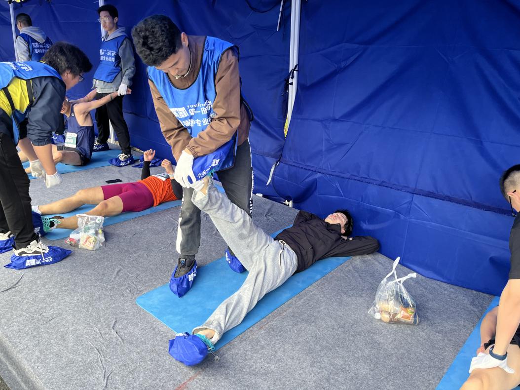活动期间,水电院志愿者主要分布在赛后拉伸区,不辞辛劳,灵活应变,为每一个挥洒汗水的参赛者们做精心护理。每一个动作都倾注了志愿者们的汗水,他们以热情的精神风貌,向参赛者们展示了水电青年的风采;以细致周到的服务,让大家感受到了关怀和温暖。他们的耐心拉伸和贴心服务,有效地帮助了参赛者们的赛后恢复,推动了活动的顺利有序开展,使这场半程马拉松比赛充满了温度,将水电院志愿精神和运动精神交相辉映。